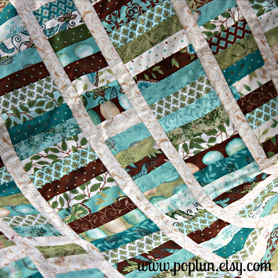 I chose a simple chocolate-colored solid for the binding - love, love, LOVE those solid bindings that are so popular right now! The quilt is currently available in the shop.